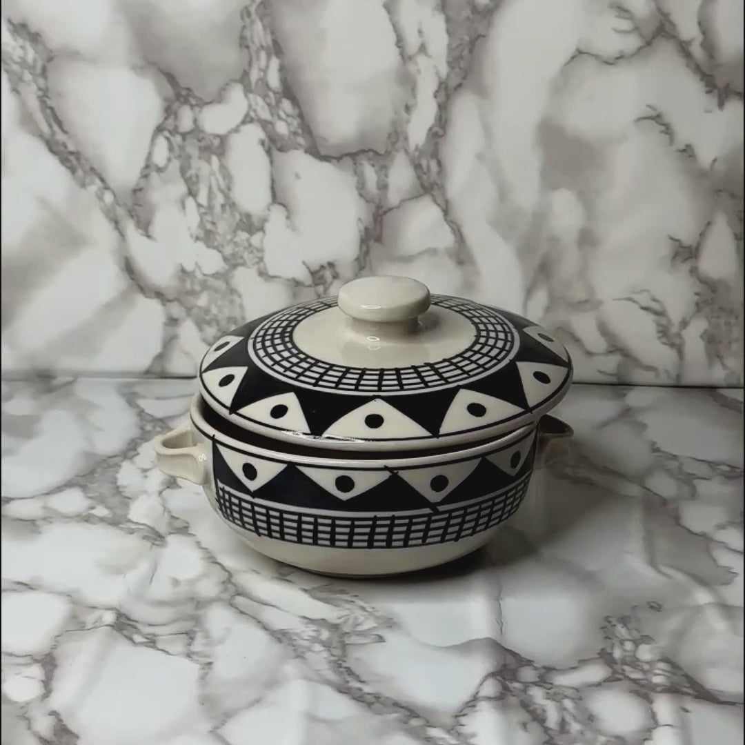 A hand-painted, 500 ml lidded dish that combines charm with purpose. Elegant on the table, functional in the kitchen – perfect for serving or storing with style.